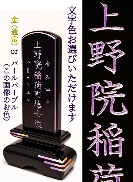 このお位牌は「黒檀/紫檀位牌」です。戒名を「彫り」で記入する場合は【黒檀/紫檀/紫檀黒色位牌向け】4000円↓をお選び下さい。