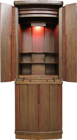 光沢塗装にしては、お求めやすいリーズナブルな価格になっております。また、デザイン性の高いお仏具やお位牌をお選び頂ければお洒落な家具のひとつとしてご安置頂けます。 ※写真はウォールナットブラウン色です。 ※製造時期により細部の仕様が多少変わる場合がございます。 ロアール45号
