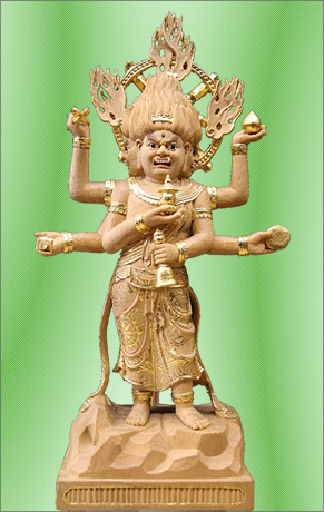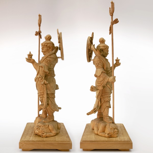 雷神・風神は電気関係・通信関係・報道関係の方々の守り本尊としてお祀り頂けます。 雲の上から下界を見下ろしているため、お顔は下を向いているのが基本です。 |